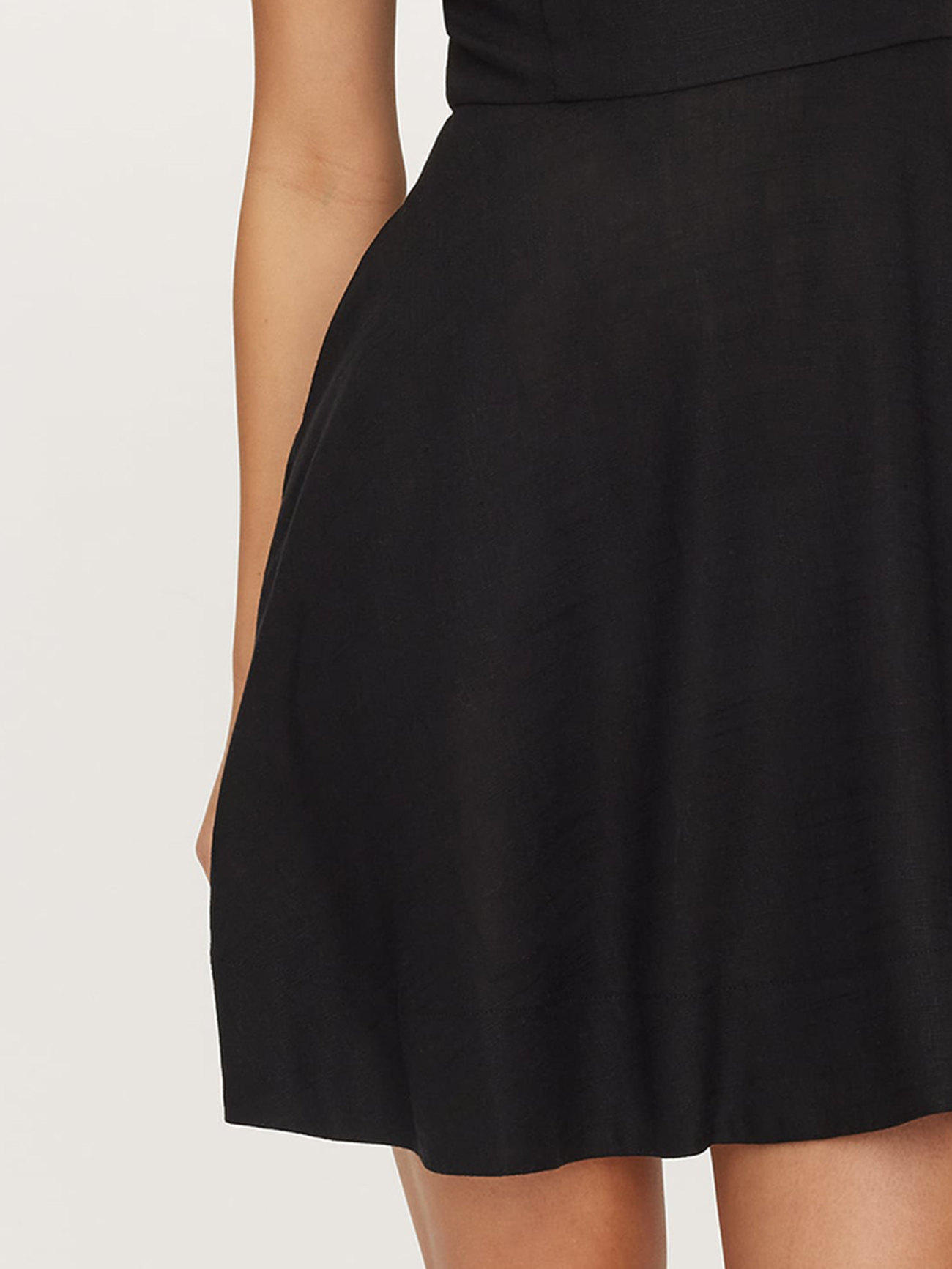 Betty mini is made from a viscose/linen blend fabric that drapes softly at the skirt. With a slim fitting bodice, she also features adjustable straps to suit your mood of neckline.