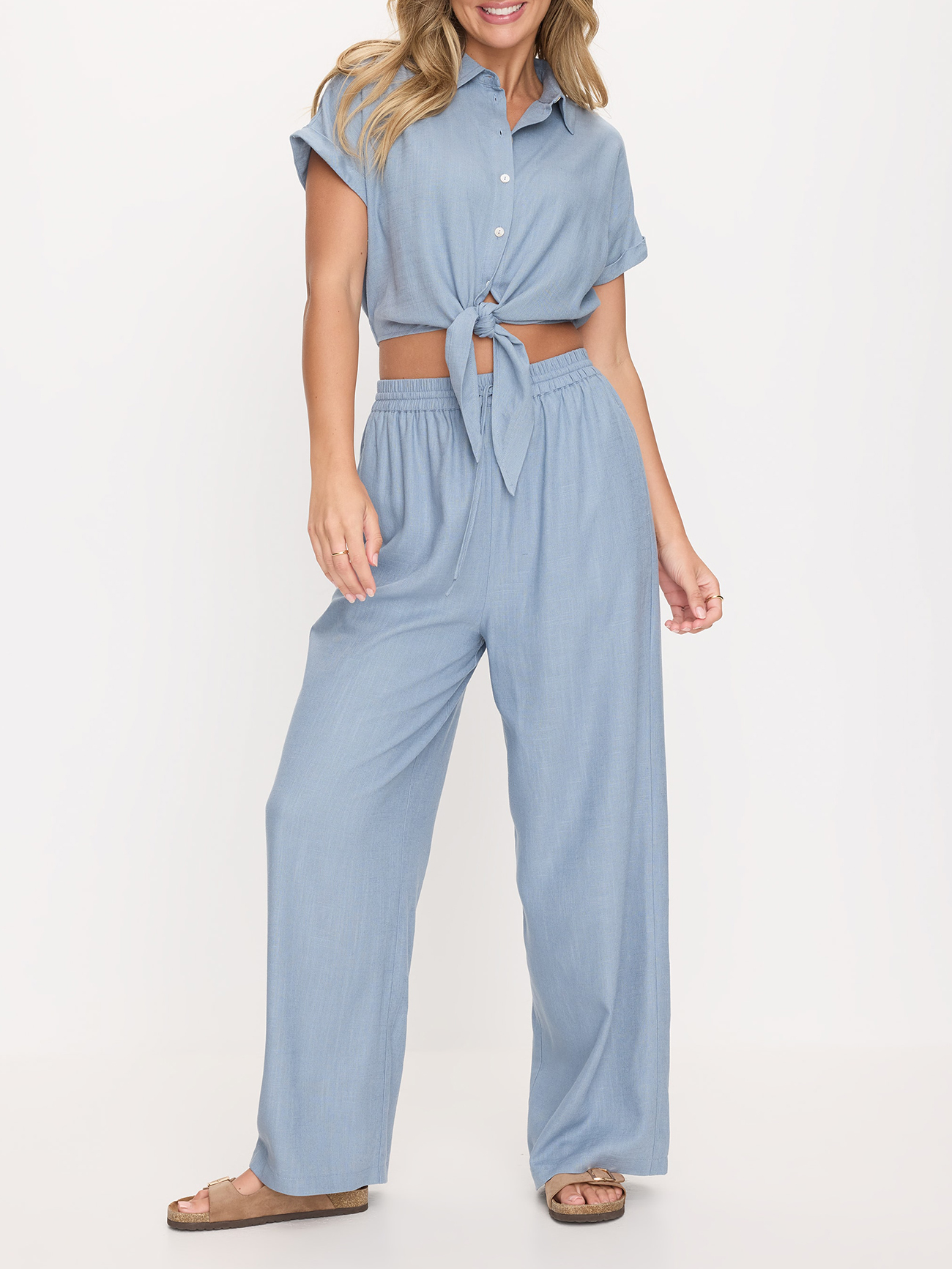 Get ready to feel like your on Vacay with our Gia Shirt! Even if you're not poolside this shirt will have you looking cute & fresh all day long. Pair back with our matching pants for the perfect sunny day outfit.