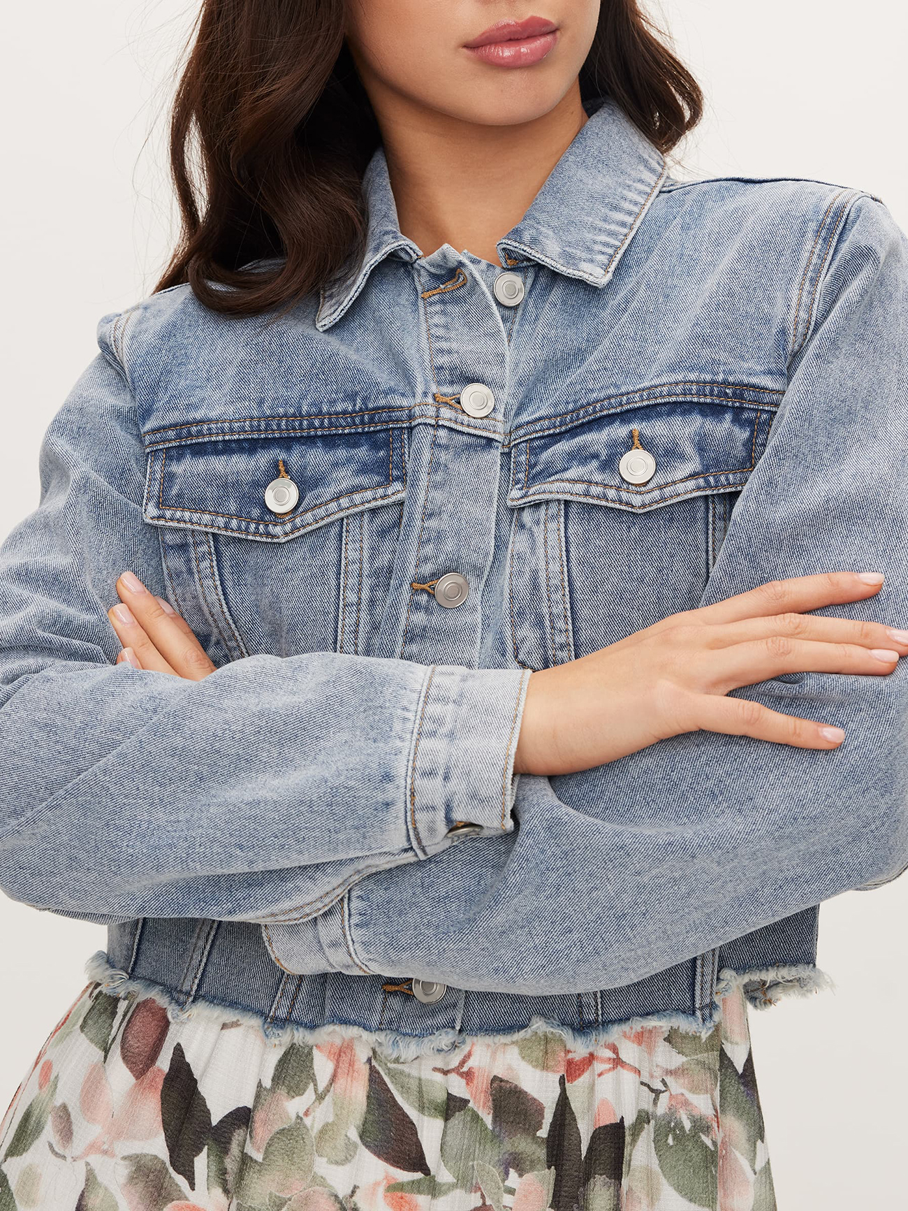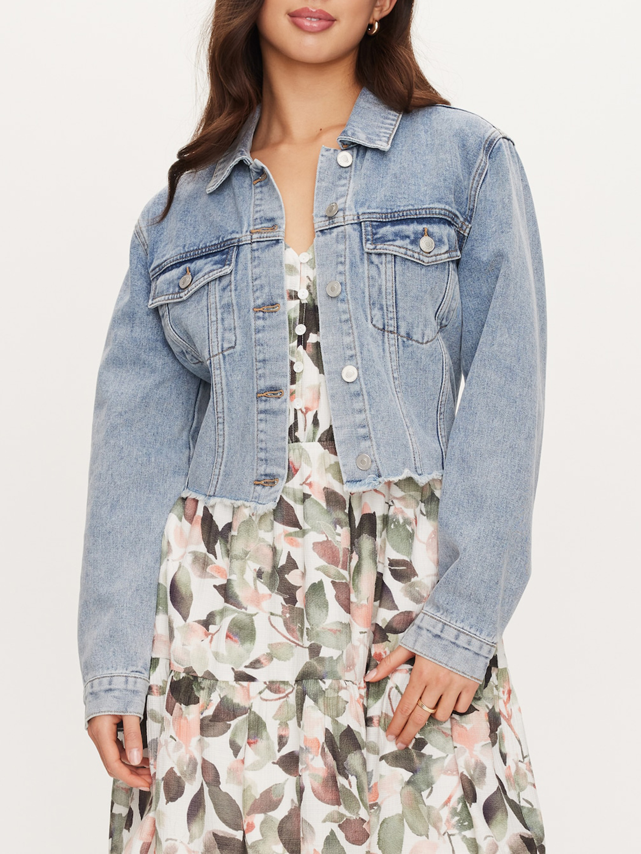 The Simona Denim Jacket perfect for the person looking for a little edge in their denim jackets. The fitted body of this jacket is modern and chic. The distressed hem is also a fun feature that will keep you fashionable! Get her while she's here!