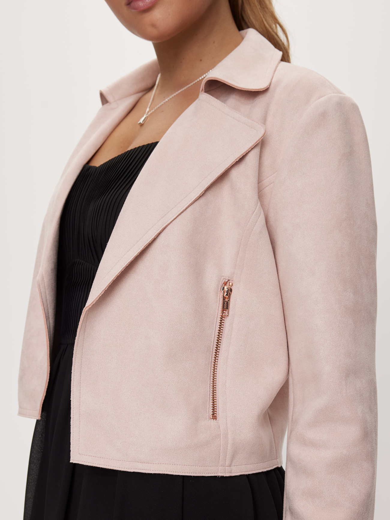 Our Springtime Suedette Jacket is the perfect lightweight jacket for the warmer months. Pair this with a dress or shorts for an easy yet chic look!